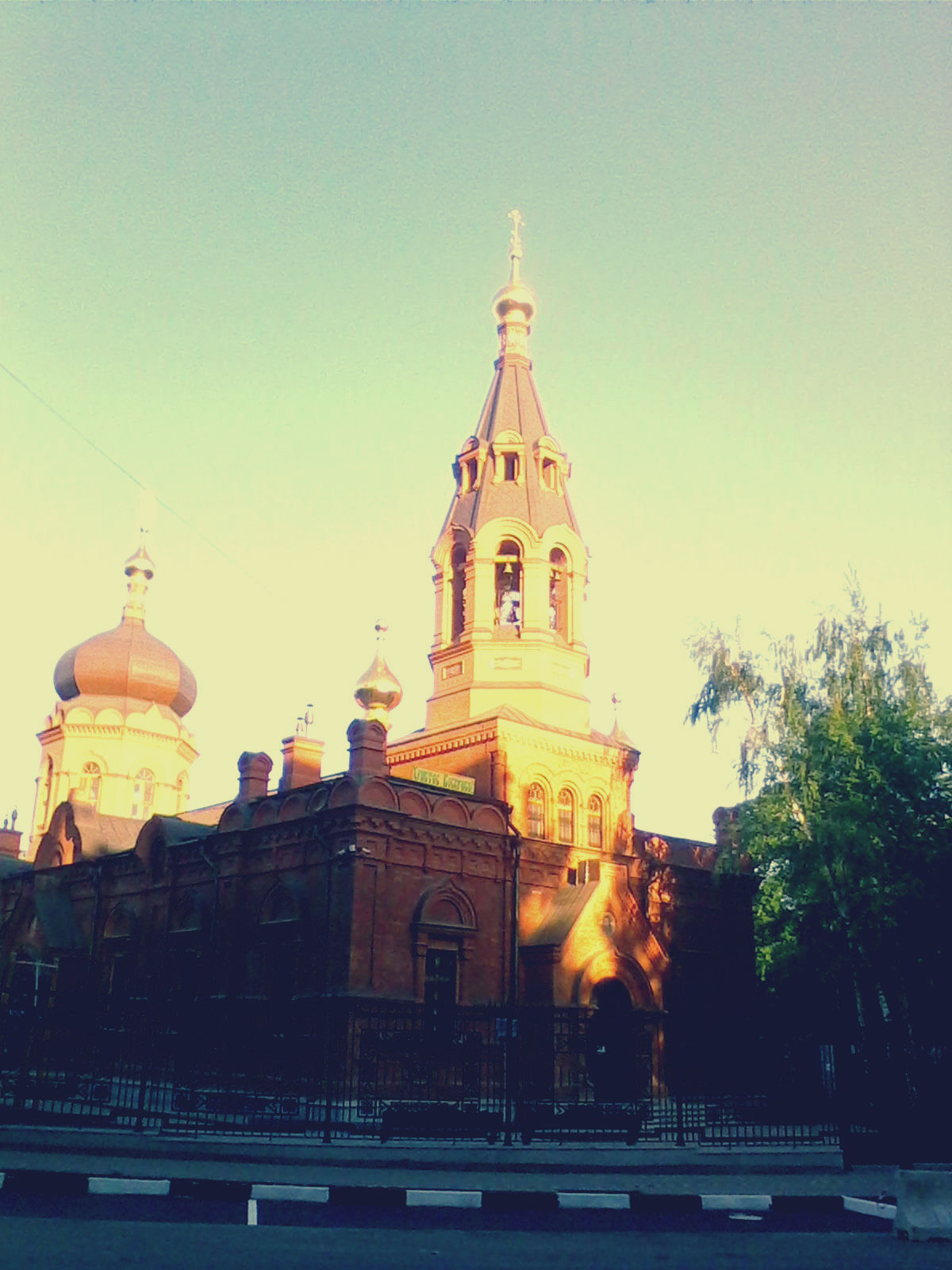 Проходим в арку, и вспыхивает в янтарных лучах солнца жемчужина Сокольников, величественный шатровый Храм Благовещения Пресвятой Богородицы в Сокольниках, и теснятся за ним низкие казарменные корпуса. Здесь время почти не властно над местностью, всё, как тогда.
