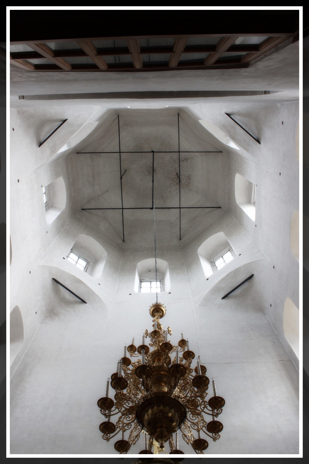 Внутренняя геометрия Никольской церкви. Необычный для храмов темный «грешный» конус устремляется к Светлому Богу. При этом выигрывает и акустика, и пространство, и настроение.