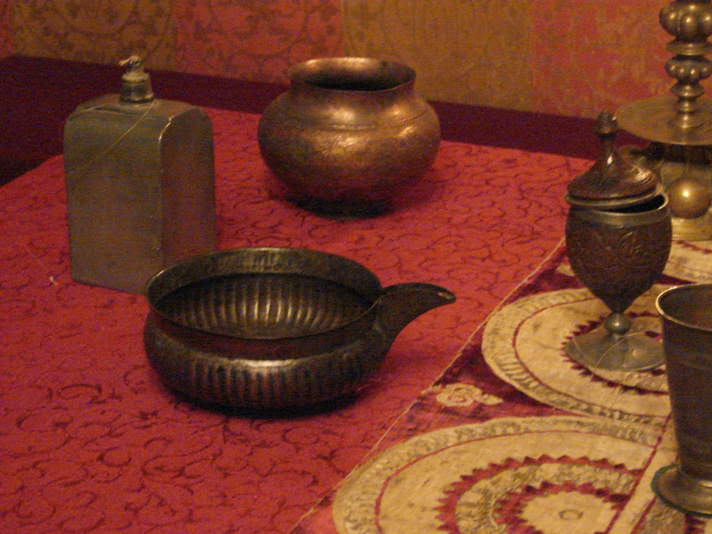 Показала нам Ольга блюда серебряные, чарочки золотые, ковши да братины расписные.