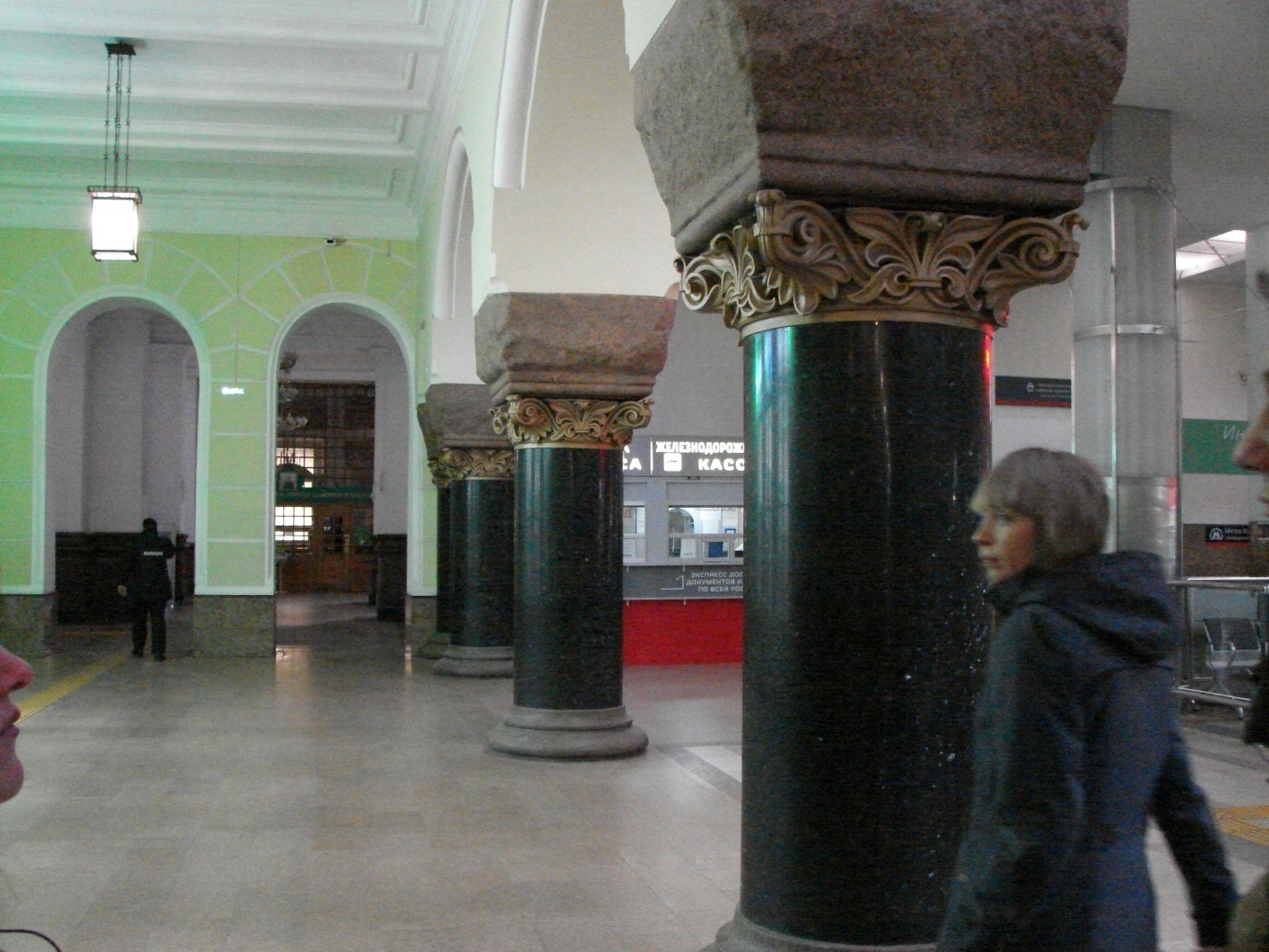 В советское время район трех вокзалов стал грязным, криминальным. Толпы «мешочников» из «колбасных» электричек с трех вокзалов опустошали магазины, как саранча. Народу на площади было столько, что мало кто замечал красоту великолепного задания, построенного Щусевым. Юрий провел нас в VIP-зал (в прошлом легендарный ресторан, расписанный жар-птицами работы Е. Лансере.